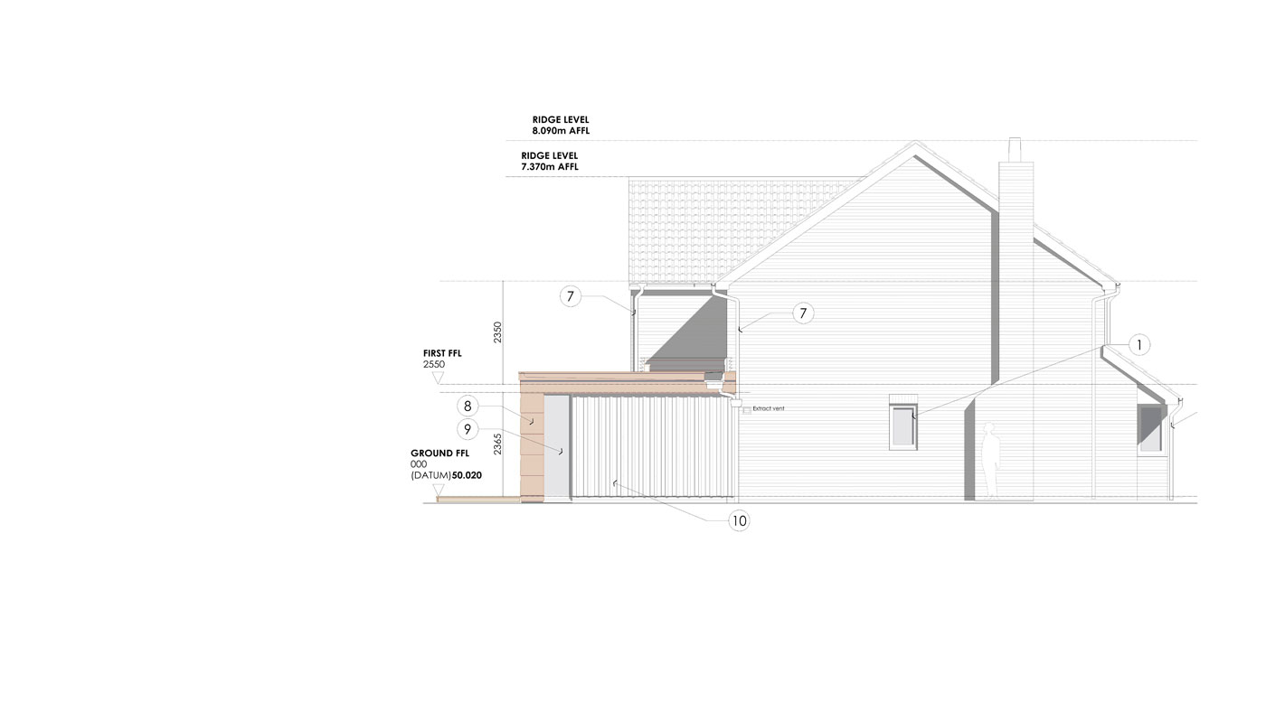 Concept design and Planning Application for a private client; creating a small contemporary extension and kitchen redesign to this existing dwelling. The site presented a number of detailed constraints, namely a number of significant trees. Full service throught to completion. RIBA stage A-L. Project value £210K.