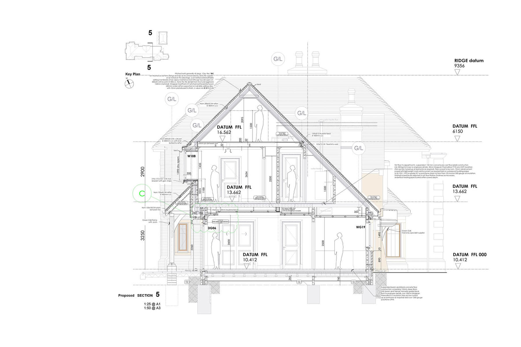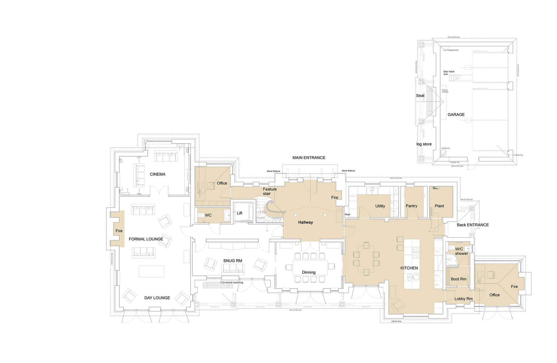 This project began as a major refurbishment of an existing 1950 heavily extended dwelling on a site that demanded a better resolution. It quickly progressed to a demolition and New build. Our initial response was well received by the client to create an imposing , but well-crafted traditional Arts & Crafts styled dwelling that maintained a sense of ‘Home’ running throughout the internal spaces internally. Our Appointment for a Full service - RIBA Stage 1-6 , began on site in late 2020 and progressed to a completion May 2022.