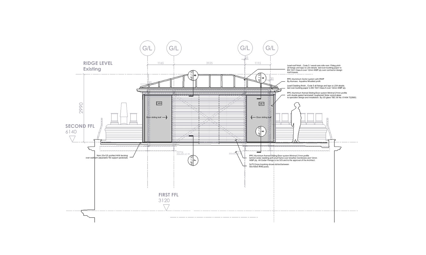Full service for this private client to refurbish an existing roof top residential flat along with replacement roof top conservatory. Project value £250K. RIBA stages A-L with full contract supervision.