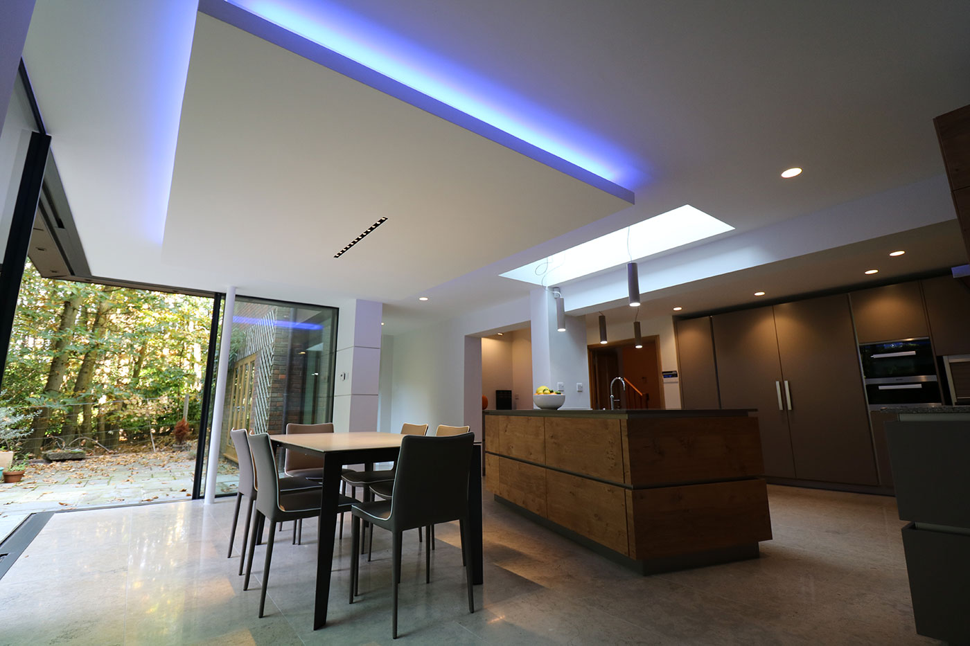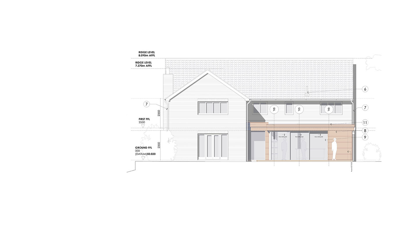 Concept design and Planning Application for a private client; creating a small contemporary extension and kitchen redesign to this existing dwelling. The site presented a number of detailed constraints, namely a number of significant trees. Full service throught to completion. RIBA stage A-L. Project value £210K.