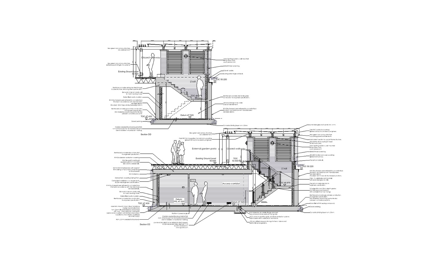 Extension to an existing Grade 2 listed house. Works comprising a 450 sq ft below ground wine cellar and linking pergola structure.