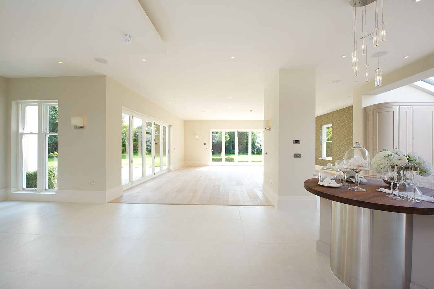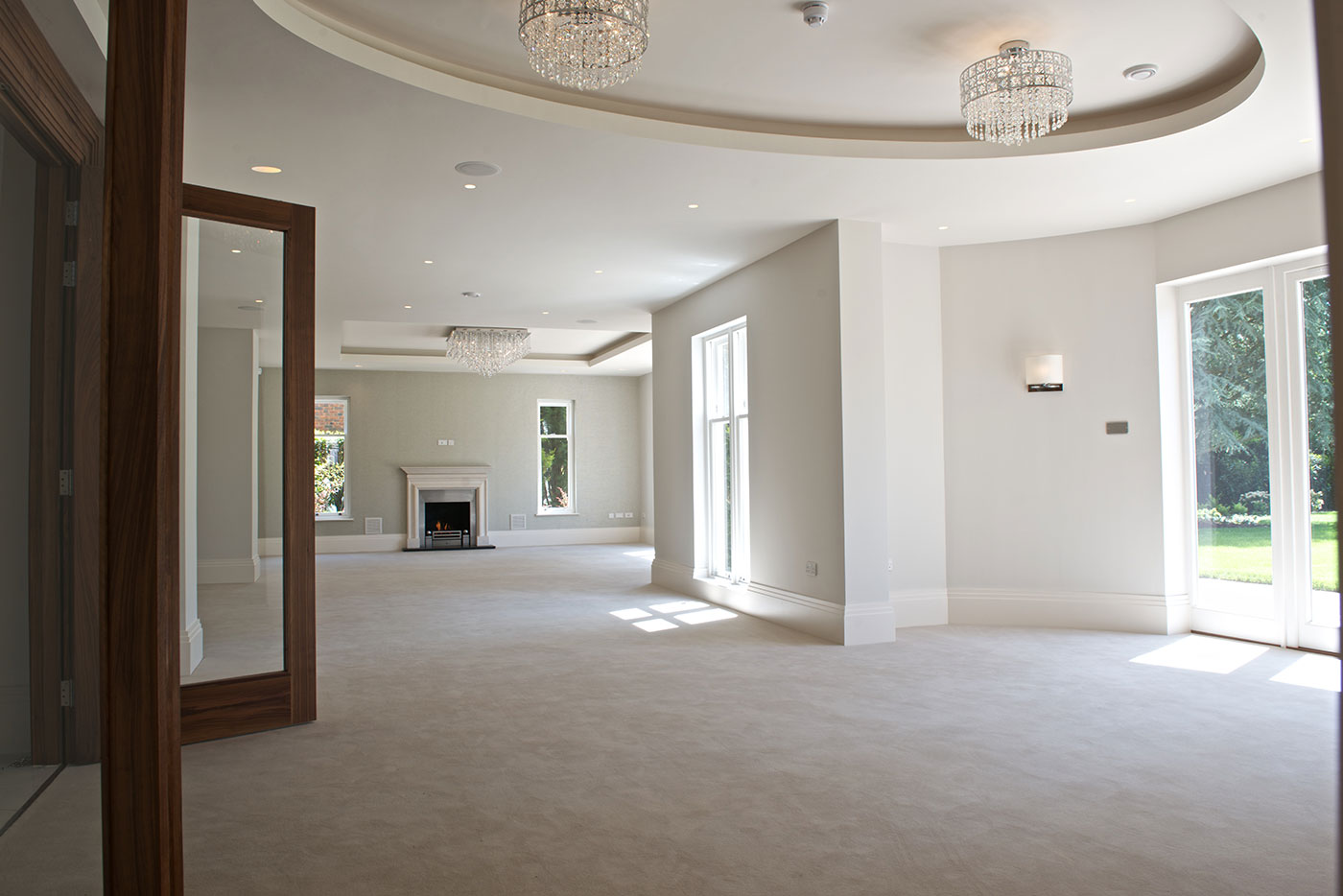 A large detached houses on 2 levels completed Aug 2013, the scheme evolved to its present form (7,800 sq ft) with our appointment, RIBA Stage A-F for a commercial developer. The classically designed external façades, contrasting with the internal layout provide an imposing development with strong emphasis on handmade quality kitchens / bathrooms with clean light spaces.