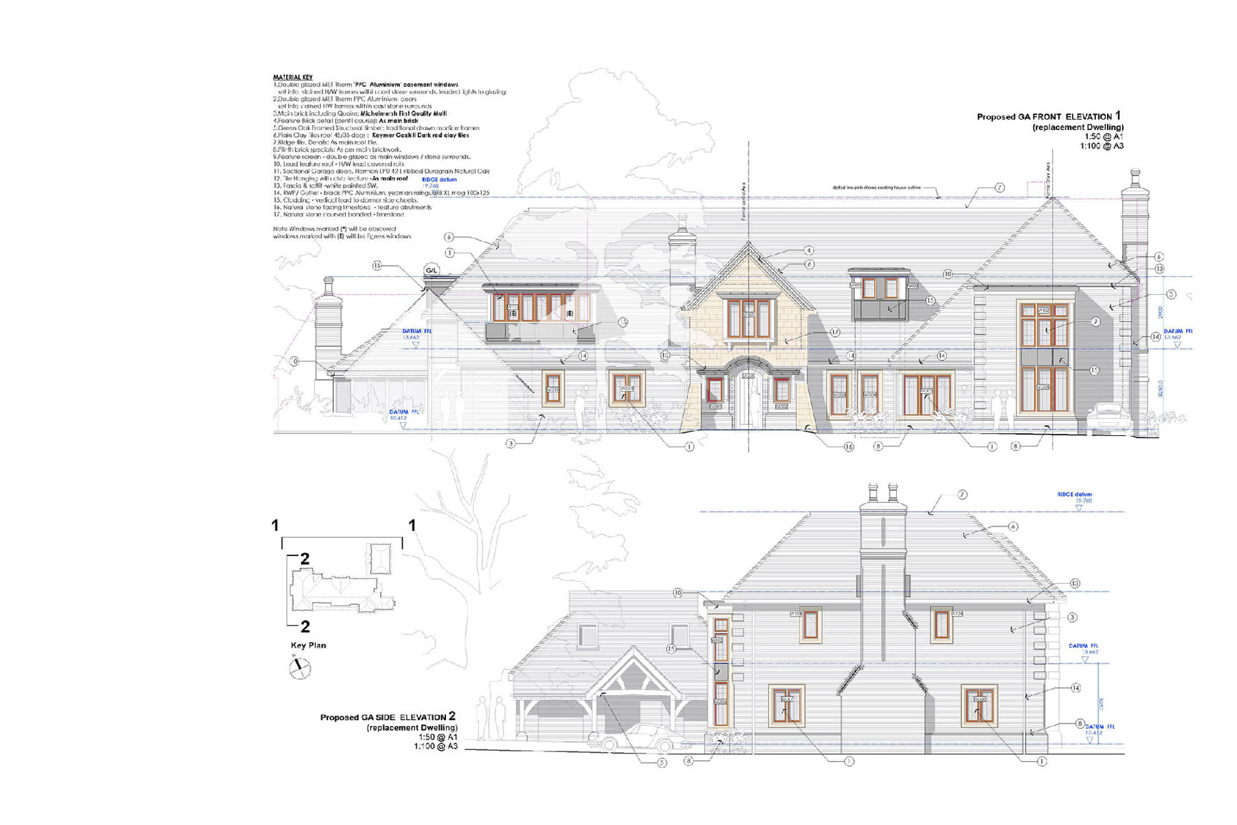 This project began as a major refurbishment of an existing 1950 heavily extended dwelling on a site that demanded a better resolution. It quickly progressed to a demolition and New build. Our initial response was well received by the client to create an imposing , but well-crafted traditional Arts & Crafts styled dwelling that maintained a sense of ‘Home’ running throughout the internal spaces internally. Our Appointment for a Full service - RIBA Stage 1-6 , began on site in late 2020 and progressed to a completion May 2022.